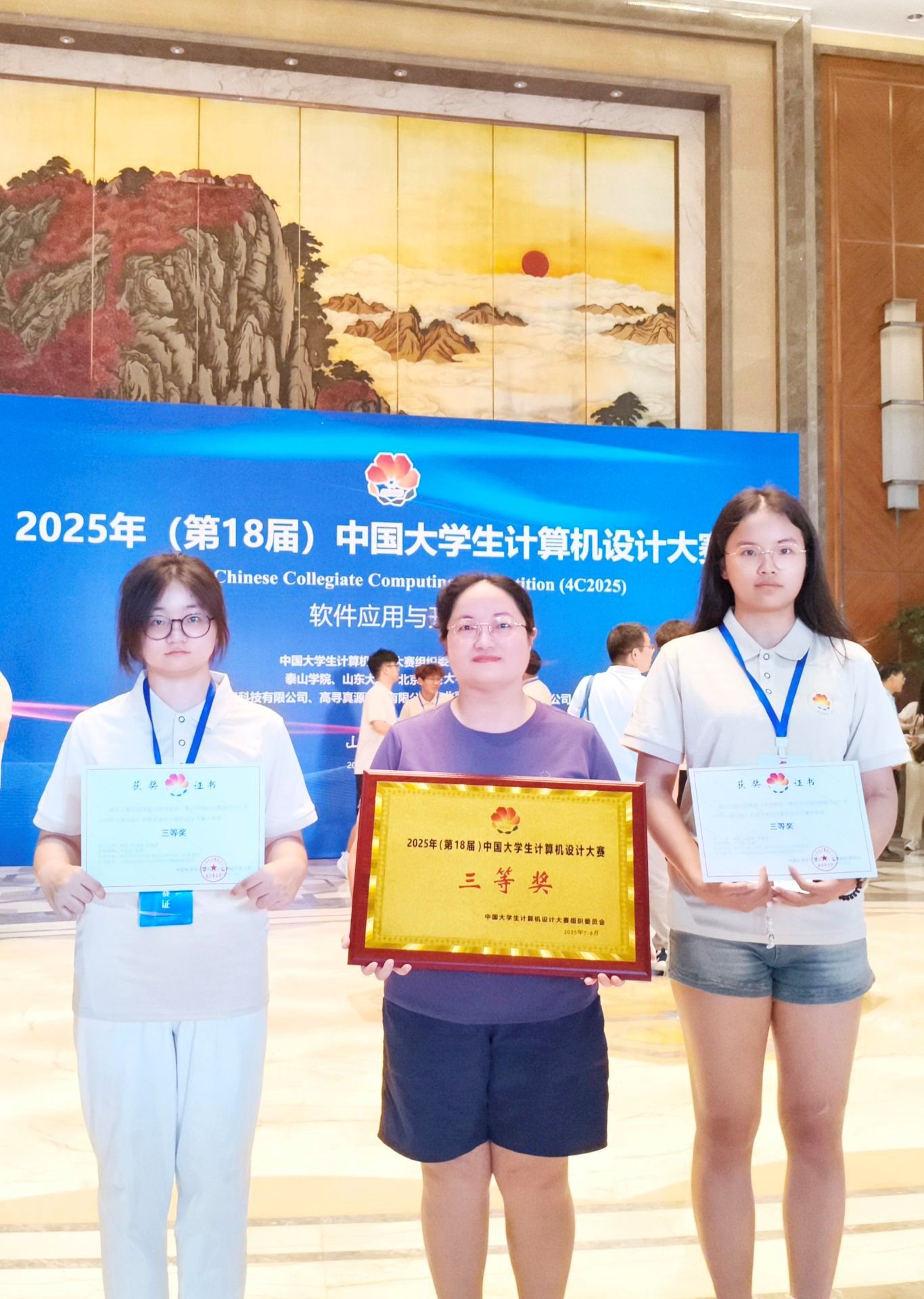 中国大学生计算机设计大赛传来捷报。7月27日至31日,第18届大赛(软件应用与开发)全国决赛在山东泰安泰山学院举行。由我院尹孟嘉、张涛老师指导,韩阳、吴成萌、吴海萍三位同学完成的作品《智评筑优——教学评估综合数据平台》荣获全国三等奖。