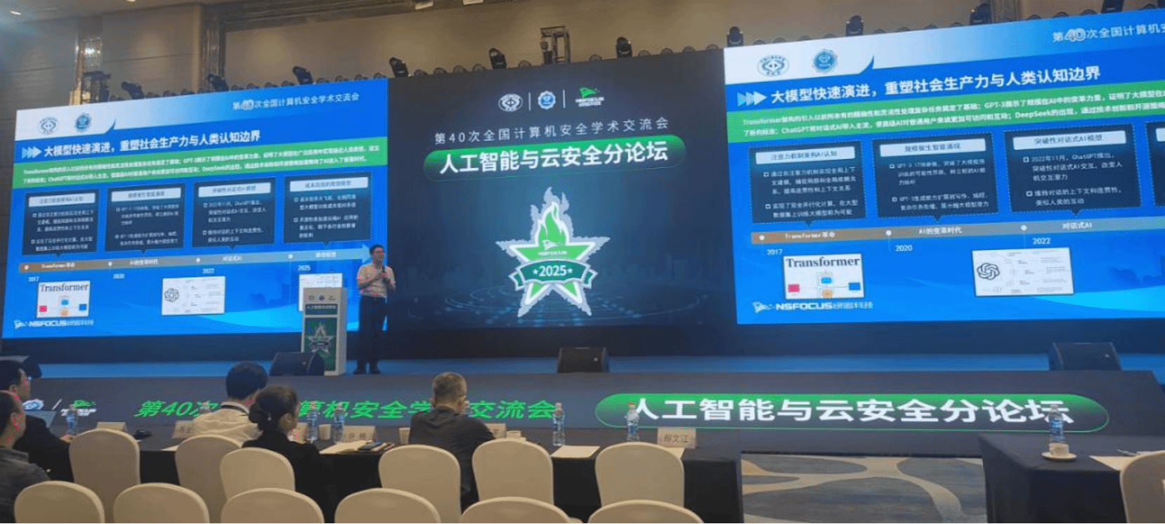 2025年9月25日至26日,由中国计算机学会主办,计算机安全专业委员会、国家计算机病毒应急处理中心、绿盟科技集团联合承办的第40次全国计算机安全学术交流会在天津顺利举行。我院计算机科学系党支部书记史维博士有幸参加了此次会议,本次会议以“人工智能时代下的网络安全新挑战与新机遇”为主题,汇聚了来自全国各地的网络安全专家、学者、企业代表及高校师生,共同探讨人工智能背景下网络安全的未来发展路径。