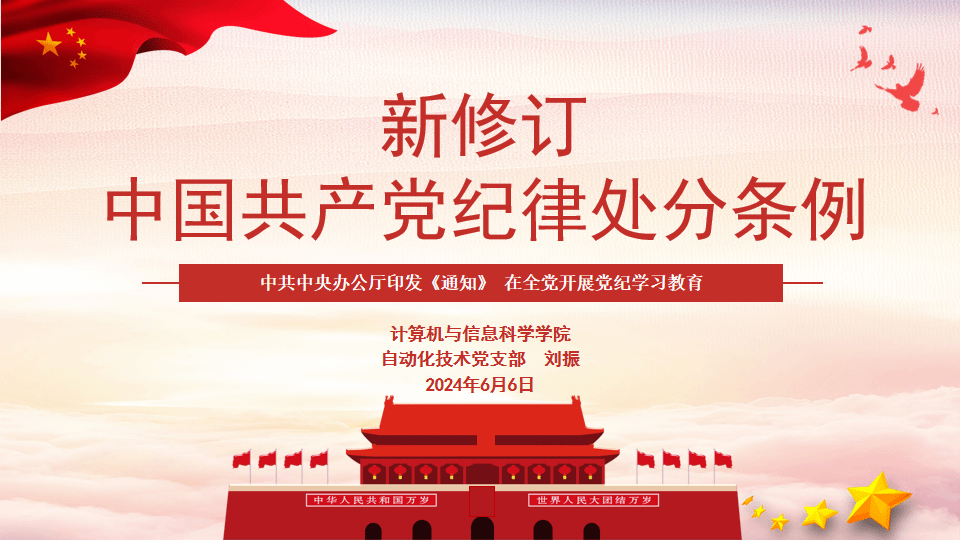 随后,刘振同志结合自学情况,详细解读了新修订的《中国共产党纪律处分条例》。通过学习新修订的《中国共产党纪律处分条例》,让支部全体党员以高标准、严要求来衡量和约束个人言行,不断增强党员队伍的先进性和纯洁性,以学纪知纪明纪促进遵纪守纪执纪。