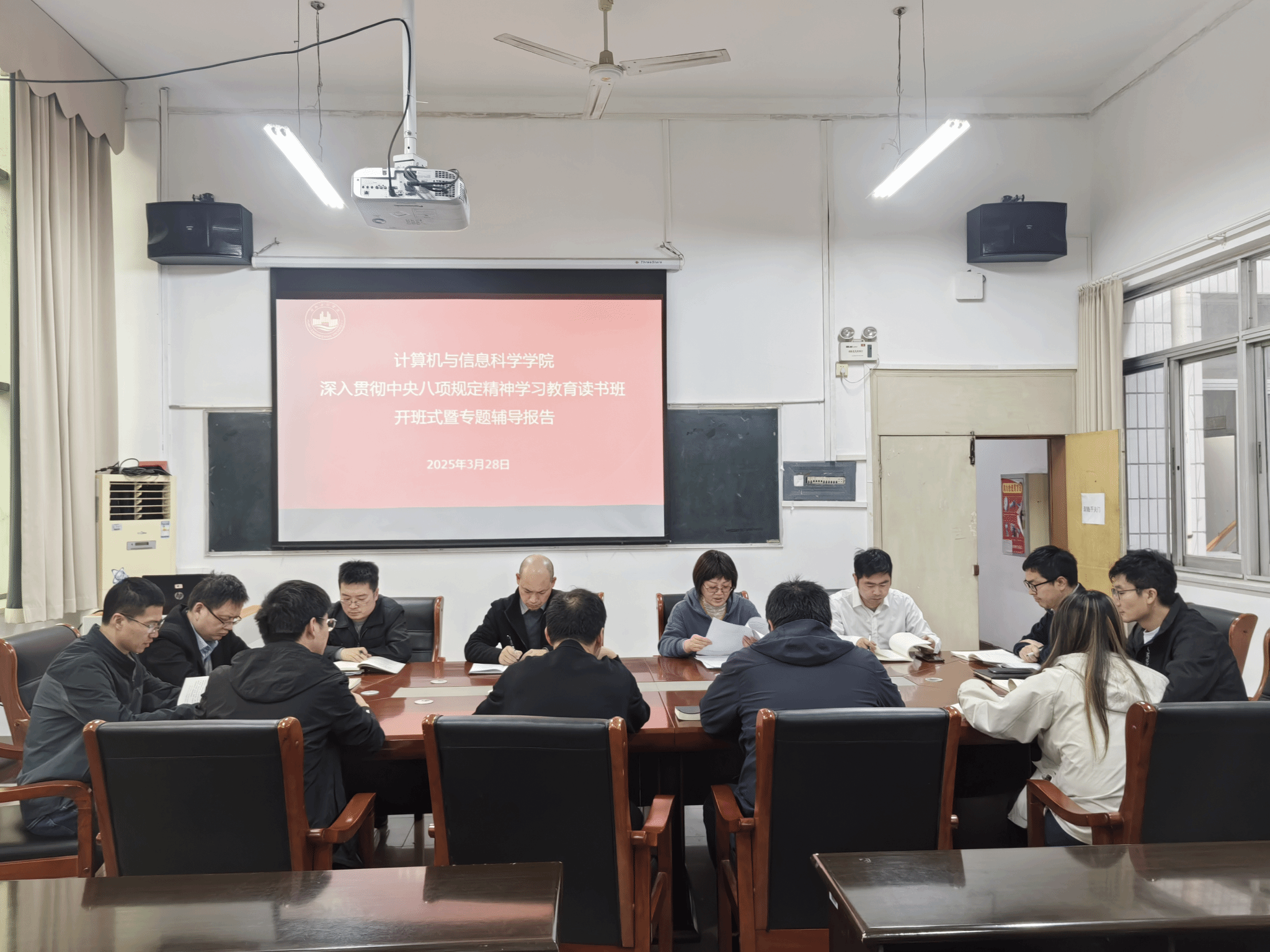 2025年3月28日下午,9428cn太阳集团古天乐在学院二楼会议室成功举行了深入贯彻中央八项规定精神学习教育读书班开班仪式暨专题辅导报告会议。会议由党委书记伍艳泽同志主持,计算机学院领导班子成员、党支部书记参与了读书班学习。