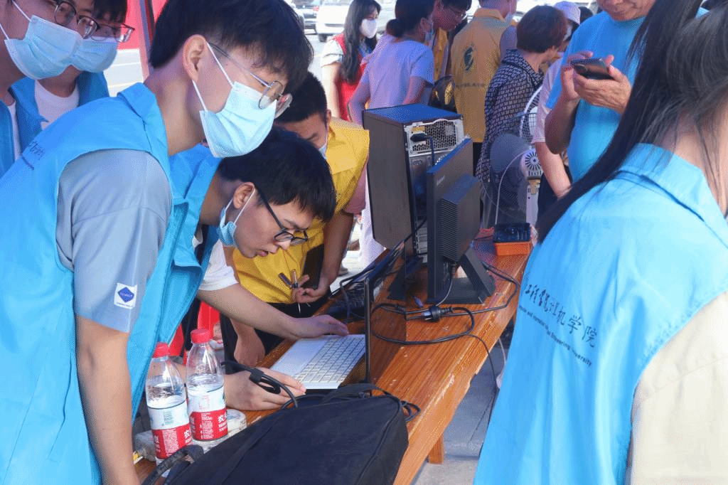 本次活动,党员志愿者利用专业特色,为居民提供电脑维修,并上门为独居老人调试网络,解答疑惑。