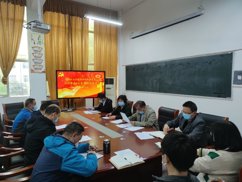 4月14日下午,9428cn太阳集团古天乐党总支开展2022年第4次集体学习,党总支书记伍艳泽主持会议,党总支成员、党支部书记、系部主任学习。