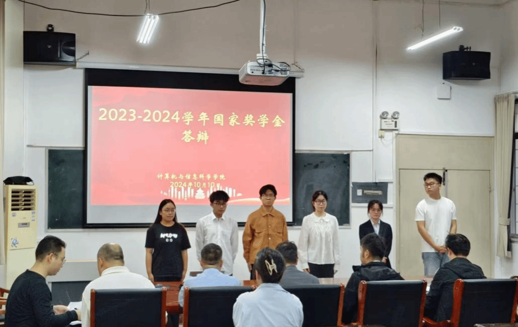 2024年10月10日,计算机学院在学院二楼会议厅举办了2023-2024年度国家奖学金答辩会,出席本次答辩会的评审团成员包括计算机学院的熊伟副书记、郭海如副院长、王维虎副院长,以及各年级辅导员、毕业年级班主任,黄胡瑞、罗曾、郑紫微、李书航、陈萌和胡玉洋六位优秀学子参加了此次奖学金竞选并进行答辩。