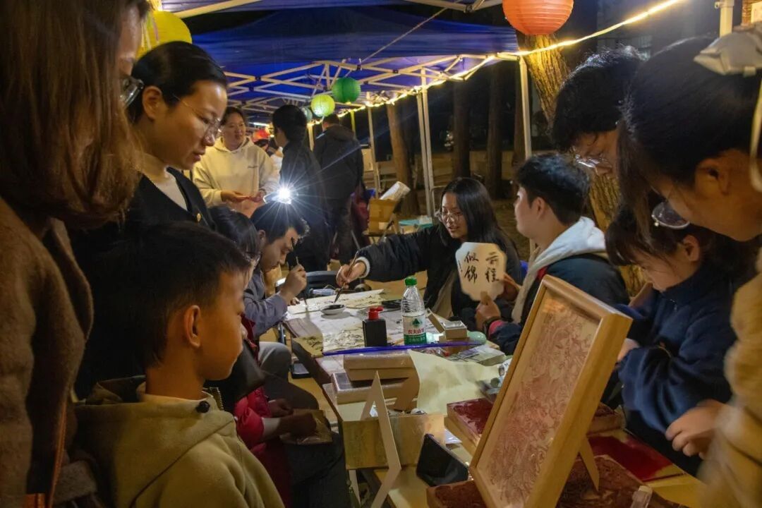 暮色四合,林荫道上各式花灯次第点亮。本次活动由计算机学院华章汉服社团精心承办,设置了签到兑奖、游戏竞技、手作体验、华灯展演四大板块。师生持铜币参与投壶、猜谜等十八项传统趣味活动,在题字、绘扇、制香中体验手作温度;活动尾声,积攒铜币还可兑换学院特色文创礼品。现场人气最旺的浮彩绘扇摊位,让参与者亲手调制漆料、绘制扇面,将传统工艺转化为可触摸的校园记忆。
