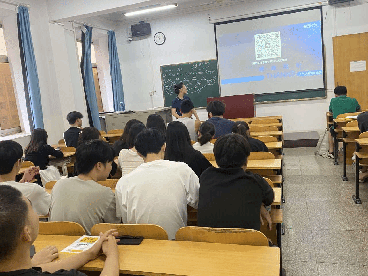 宣讲过程中,来自重庆海云捷讯科技有限公司的专业人士向同学们详细剖析了当前严峻的就业形势,引发了同学们对未来职业规划的深入思考。接着,他们着重为同学们讲解了 FPGA 行业的广阔前景和丰富应用领域。让同学们了解到 FPGA 技术在人工智能、大数据、通信等诸多领域的重要作用和广泛应用,以及其持续增长的市场需求,这无疑为相关专业的学生开辟了极具潜力的发展道路。