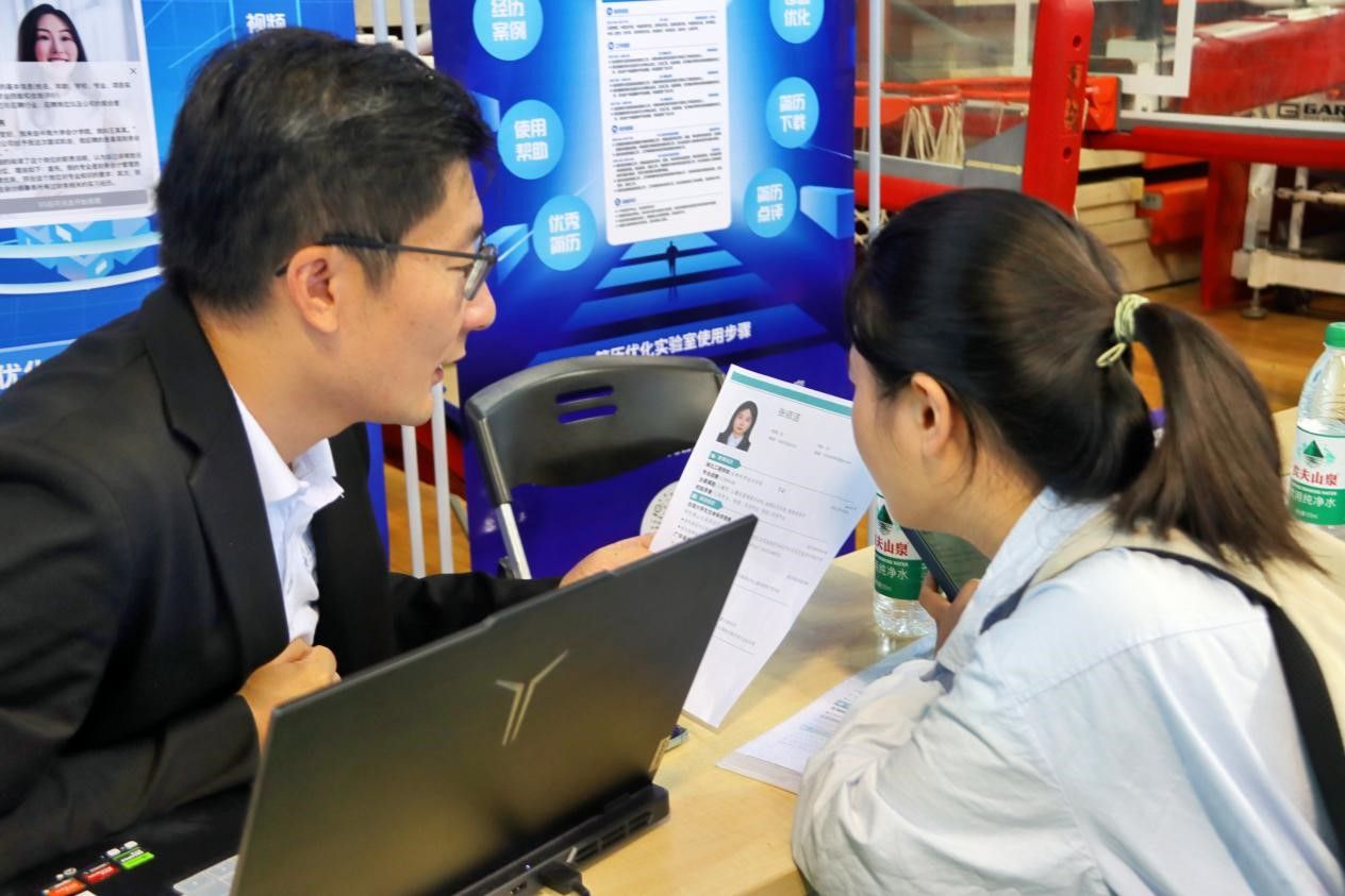 本次招聘会突破传统模式,融合数字化与智能化手段,打造“一站式”求职体验。“职达列车”工作室提前发力,协同“面试优化实验室”、“简历优化实验室”等实用工具,助力学生夯实求职基础。工作室柴松老师现场为毕业生提供政策咨询、职业规划、简历诊断、面试技巧等四项核心服务,咨询学生排起长队,现场气氛火爆热烈。服务持续到招聘会结束。