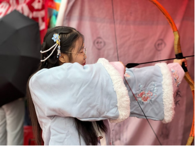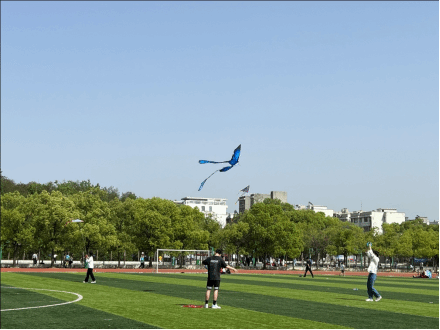 下午两点半,在东区操场上,学生们积极参与了放风筝、丢沙包、投壶、射箭、踩气球、踢毽子等众多民俗小游戏。