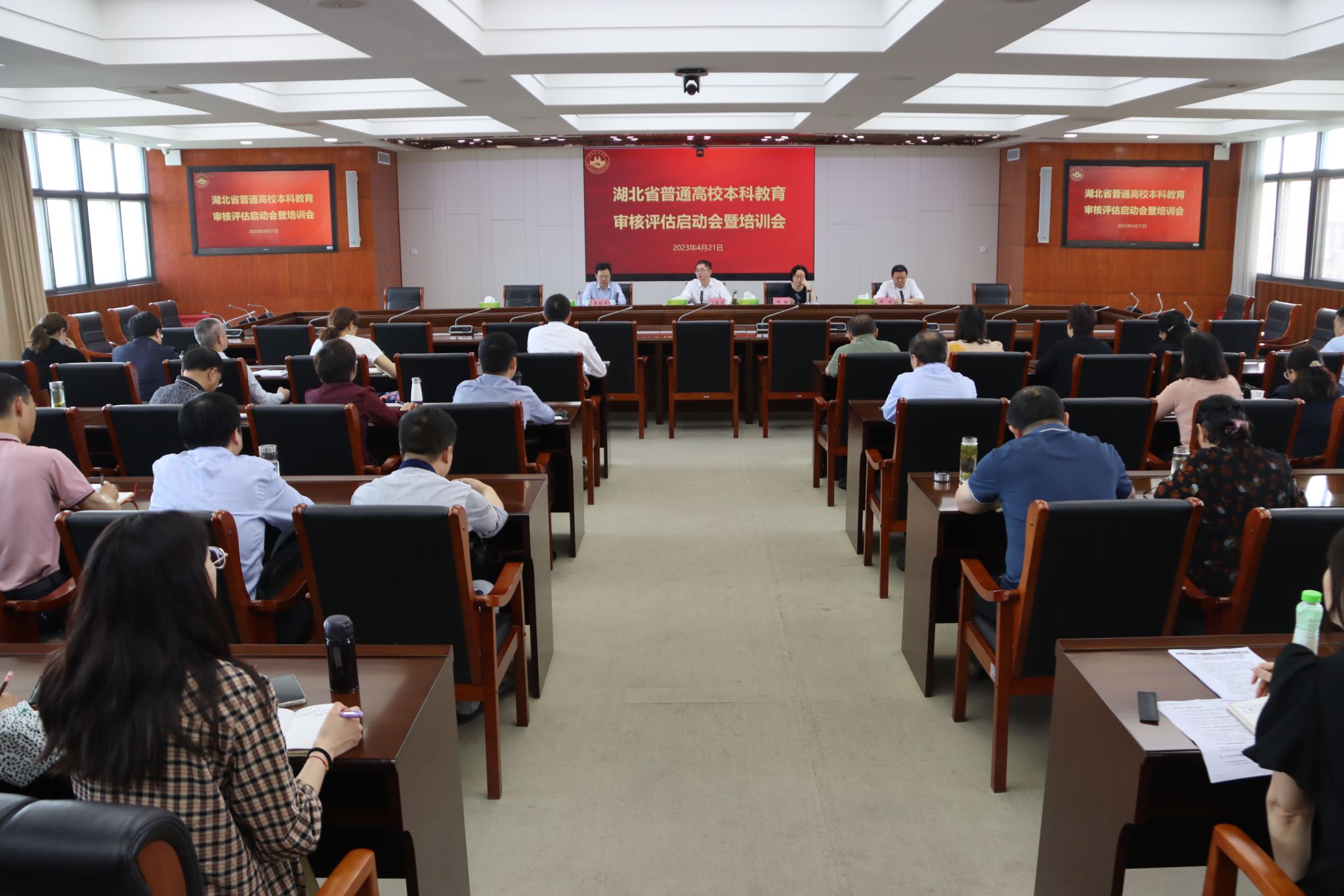 本网讯:为科学有序推进全省本科高校新一轮教育教学审核评估工作,加快完善质量保障体系,推动本科教育教学高质量发展,4月21日,湖北省普通高校本科教育审核评估启动会暨培训会召开。会议采取线上和线下相结合形式召开。线下主会场设在湖北经济学院,全省30所拟接受本科教育教学审核评估工作的高校以分会场形式参加线上会议。