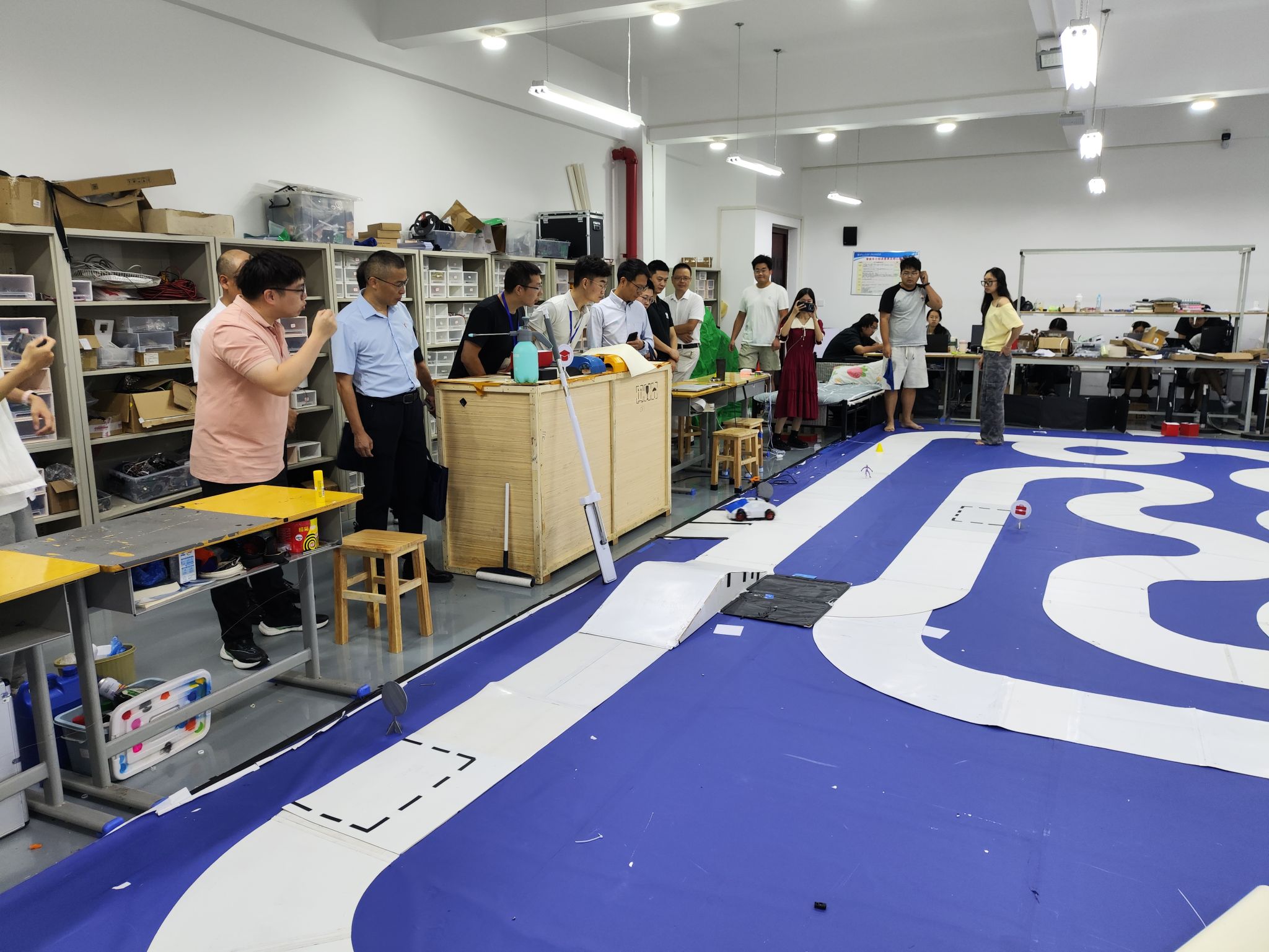 校友们在学院领导和老师的带领下,参观了人工智能实验室和春晖车队。在人工智能实验室,先进的设备和前沿的科研成果让校友们眼前一亮,实验室负责人武云云博士详细介绍了实验室在人工智能领域的研究方向和取得的突破性进展,包括智能算法开发、机器学习应用等,让校友们对学院在该领域的科研实力有了更深入的了解。春晖车队的展示同样令人振奋,车队成员向校友们展示了他们在智能车辆设计、自动驾驶技术研发等方面的成果,以及在各类竞赛中获得的荣誉,展现了学院学生在实践创新方面的优秀能力。
